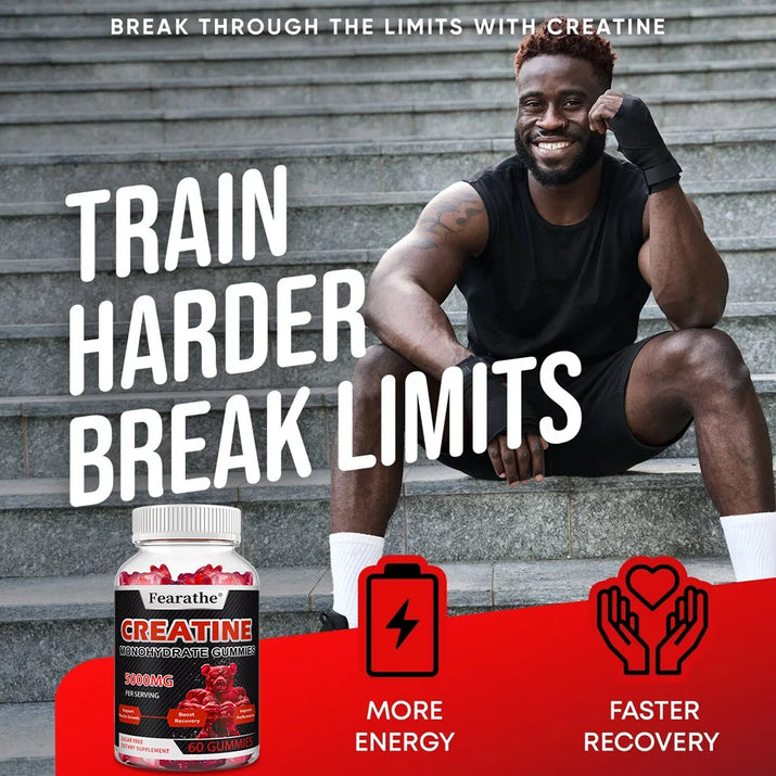 Transform your fitness game with our delicious gummies combining creatine monohydrate’s benefits into a convenient form. Achieve your performance goals while enjoying every bite!